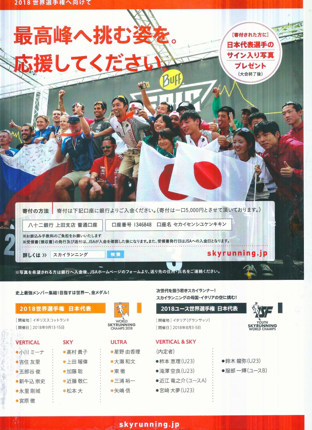 そして。最後になります。こんな私ですが、今度SKYRUNNINGの世界選手権日本代表として、9月にスコットランドで開催されるレースに参加させて貰う事になりました。