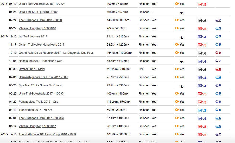 実際に背伸びをして、高ポイントを取ろうとして結局体力など自身の丈に合わないレースに出てしまった事がある人もいるかもしれませんが、ITRAではそう言う事がない様に「パフォーマンスインデックス」でレースの最低限必要なスコアも出したりしております。