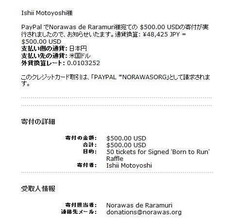 そこで俺も一肌脱ごうではないかということで$500ほど寄付をしてた。