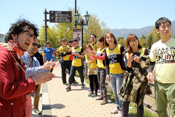 いよいよ大詰め、河口湖大橋を越え、ゴールまでラスト数百メートルで見えてきたのは、沢山の笑顔。