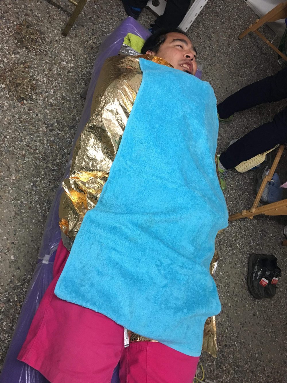 施術中も少しでも保温が出来るようにレスキューシートで保温しました。