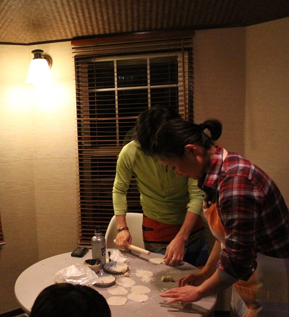 2人が皮作り、3人が餡包みと、完璧なチームワークで、餃子が出来上がっていきます。