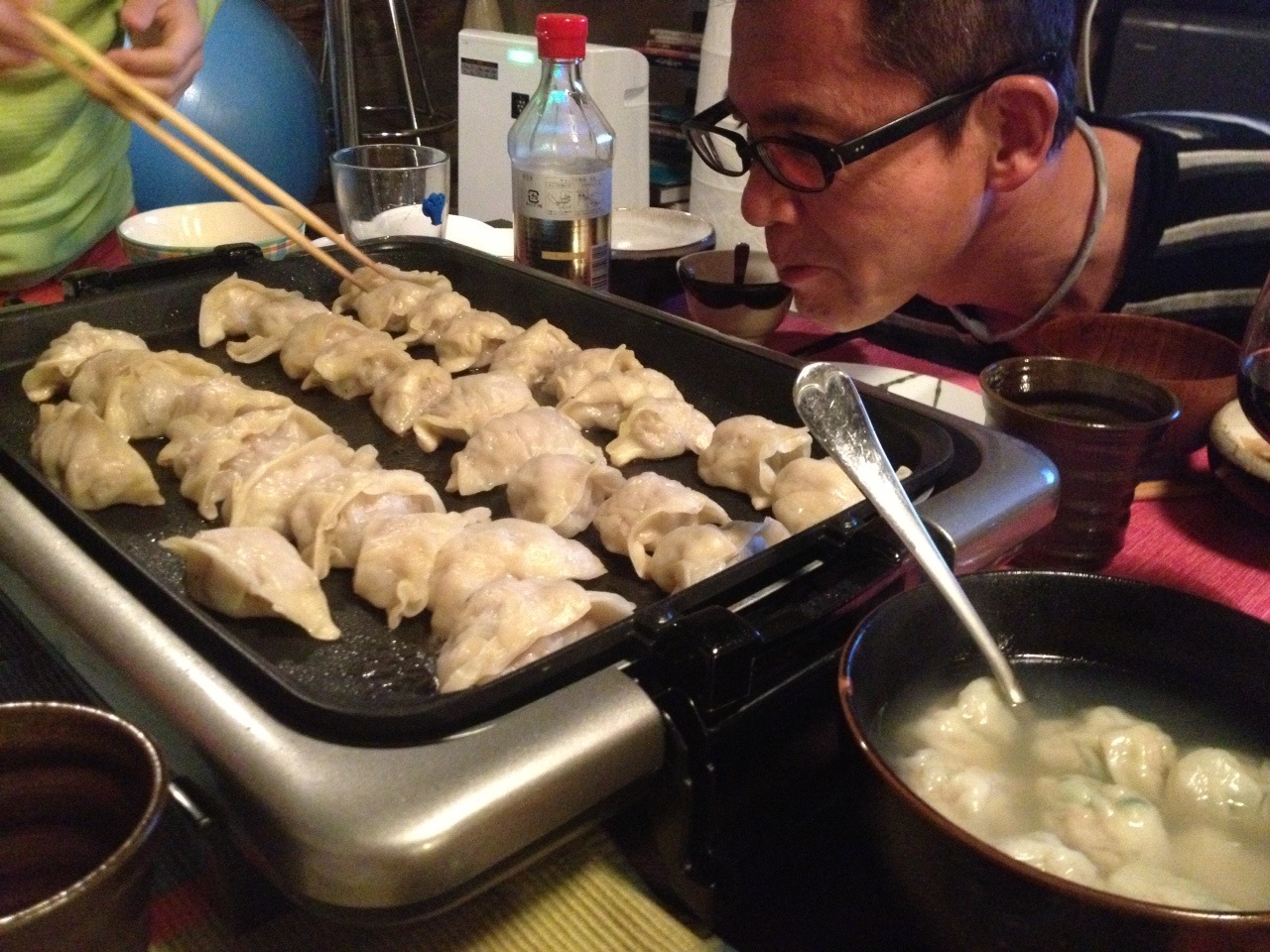 ビール、ワイン、海鮮水餃子、ビール、ワイン、肉餡餃子、ビール、ワイン、野菜餡餃子、ビール、ワイン、白米、ビール、ワイン、餃子、餃子、餃子!