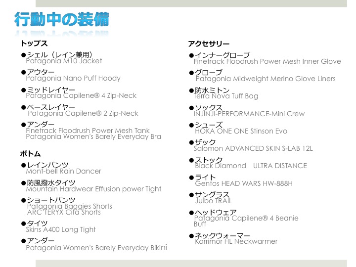 このような対策は、去年の失敗からだけでなく、日本でのアルプス縦走などの実体験から多く得ることができました。
