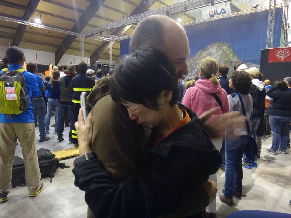 表彰式にて。スィーパーの1人がわたしを見つけて抱きしめてくれました。君は完走できなかったけど、僕たちの心の中に残っているよ。そう言ってくれました、多分、イタリア語だったけど(笑)