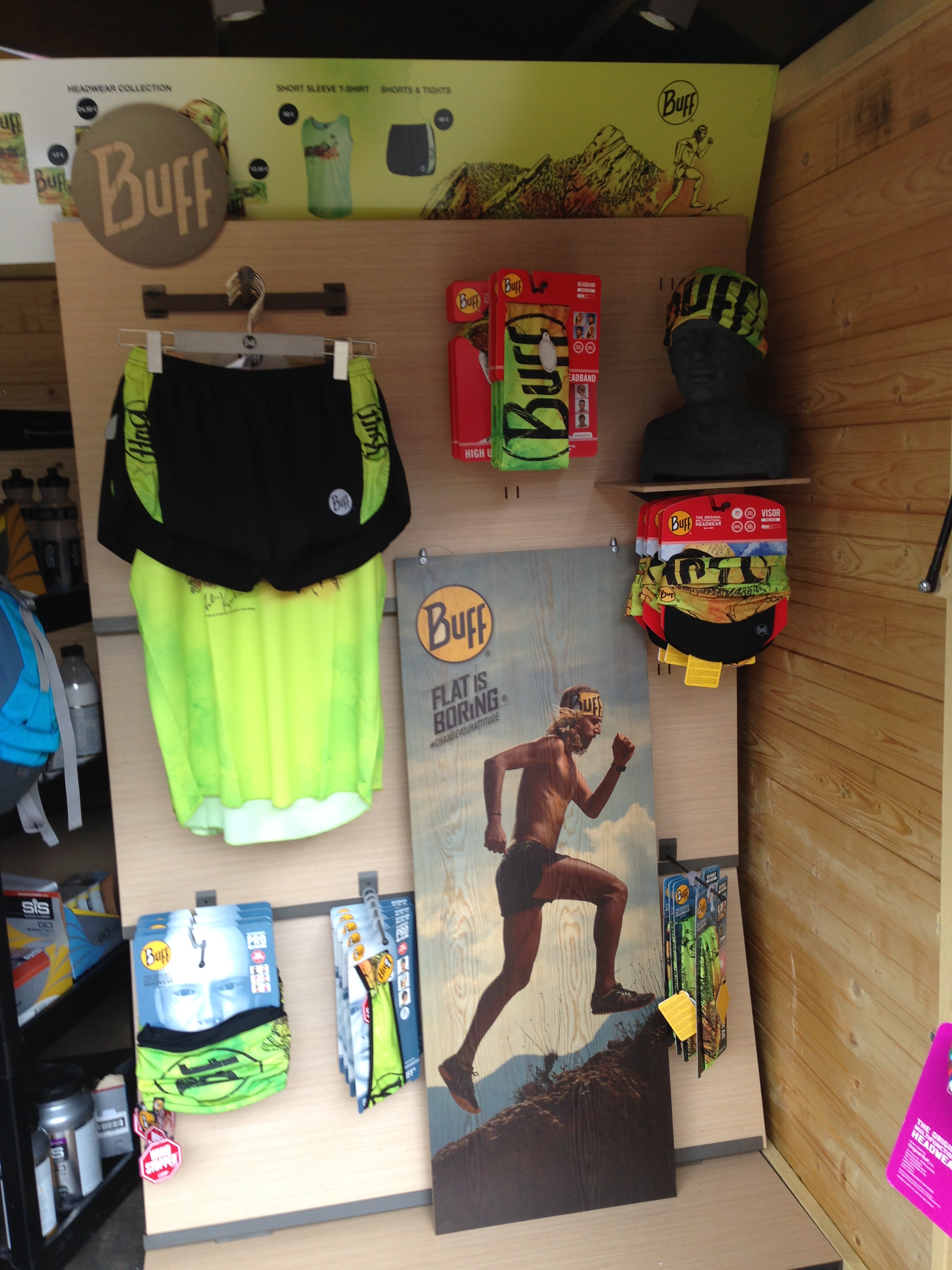 先ずは真っ先に向かったのがbuffブース。みんなの大好きなトレイルランナー、トニ―ことアントン・クルピチカのシグニチャーモデルのタンク、ショーツ、ヘッドバンド、バフ等。特にヘッドバンドは即売り切れてました。日本には何時入ってくるのでしょうか?