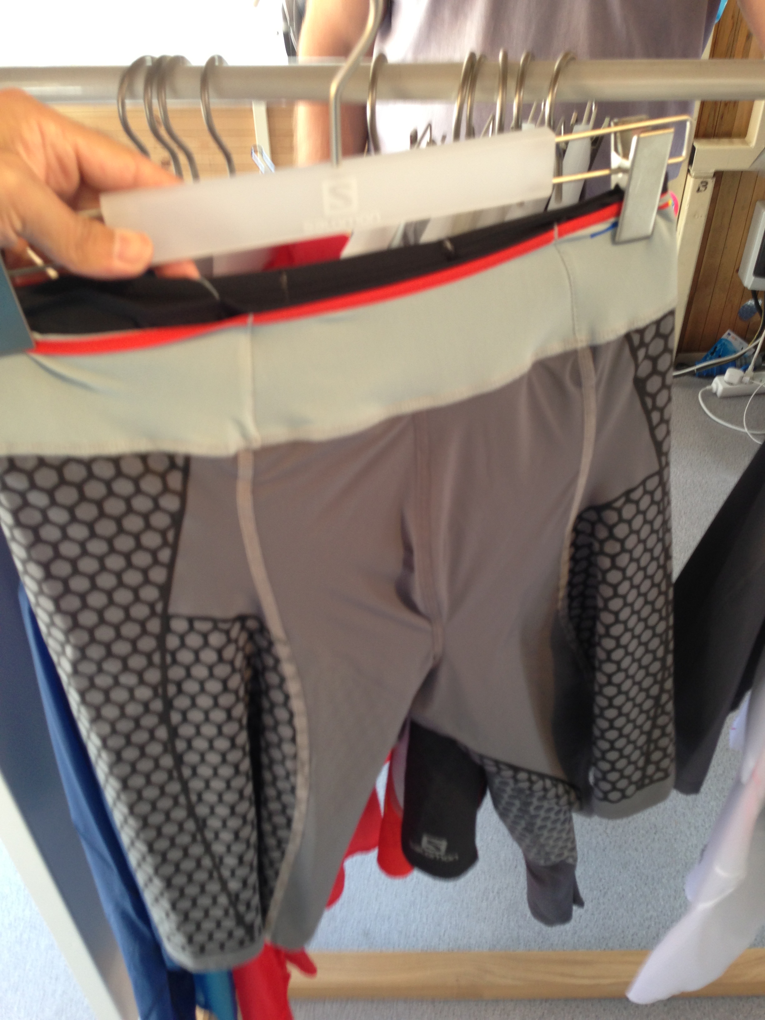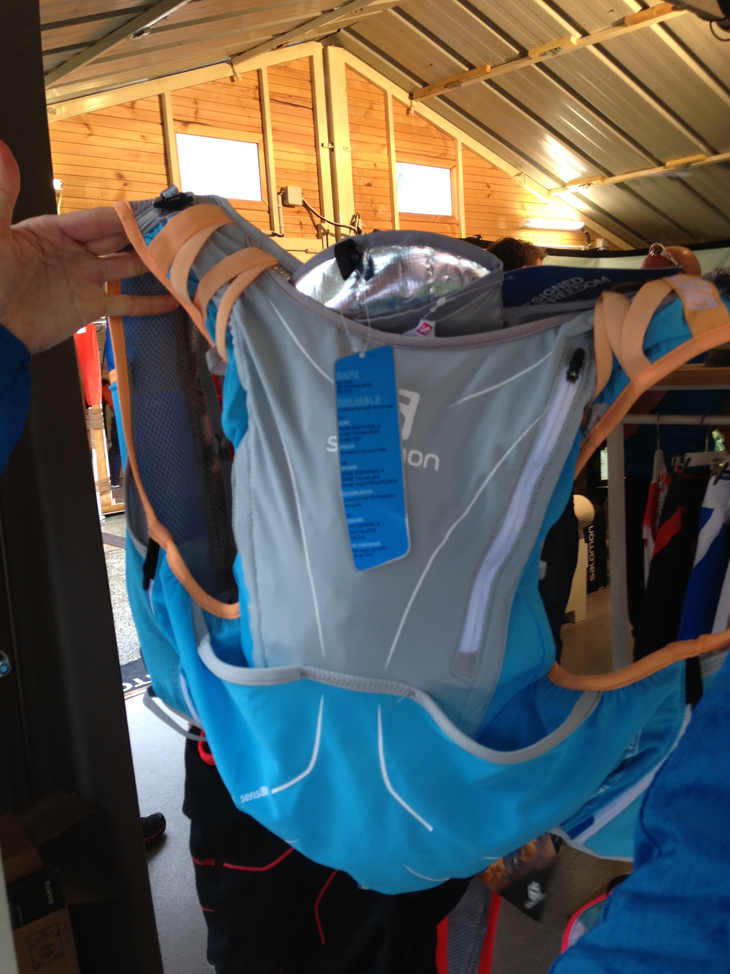 既にあちこちで紹介されている今回参加した日本の選手の間で最も話題になったのがこのHOKAの17Lのバックパック。中を撮影していないが、ビジネス向けのバックパックのように背面にたくさんの大小のメッシュポケットがあって荷物が整理しやすくなっている。