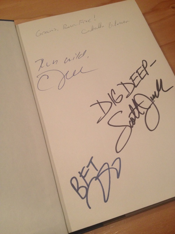 これは感動。「BORN TO RUN」の最重要人物、Caballo Blancoが作中の名言、Run Free! を直筆で書いています。彼がずっと大事にしていた想いなんでしょうね。残念ながら彼は昨年帰らぬ人となってしまった為、これは本当に貴重なサインです。