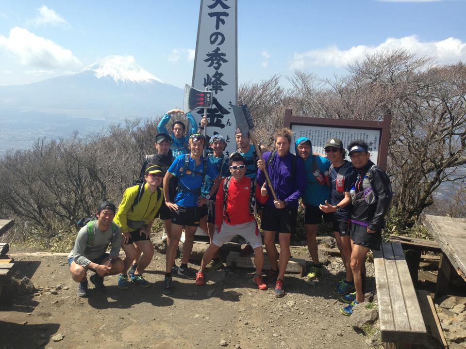 Joeとの箱根のランニングセッションでの一枚。Joeは255、小松さん(右端)と稲葉さん(右から2人目)と岩佐さん(左から2人目)は245、桑原(右から3番目)は235を履いているのがわかるでしょうか?笑