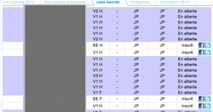 右はじのStatutにInscritとなっている白い方は優先権で「申し込み済み」ということ。それ以外の方は発表までは紫色で「En attente」つまり抽選待ちとなっています。あんな人もこんな人もエントリーしてますね!