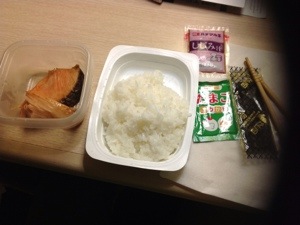 レース前日は走らないのでこの日の午前中が最後のジョグの予定。が、雨。部屋で持参した朝食を取りぼーっと過ごす。