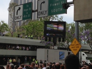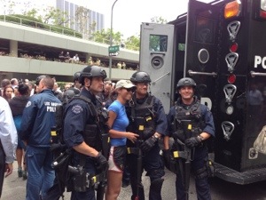 突如ホテル前で開催。爆弾テロ犯をヘリコプターやら色々登場でやっつけてた。大画面で解説しちゃうのがアメリカン。終了後はアメリカ人のヒーロー、特殊部隊のメンバーは写真攻め。