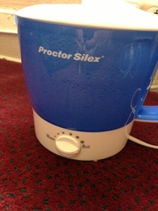 スポーツショップで気を良くした帰り道の何でも屋で14ドルの電子ケトル発見。これで便所で温めたぬるいシャケ&煮物とgood bye.Hello 温かいご飯だ。