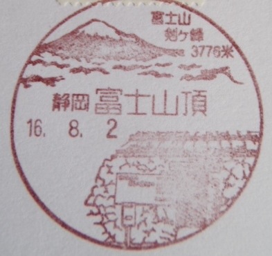 富士山の山頂には郵便局があって、この郵便局オリジナルの消印を押してくれます。今年は御殿場口山頂に開設されています。