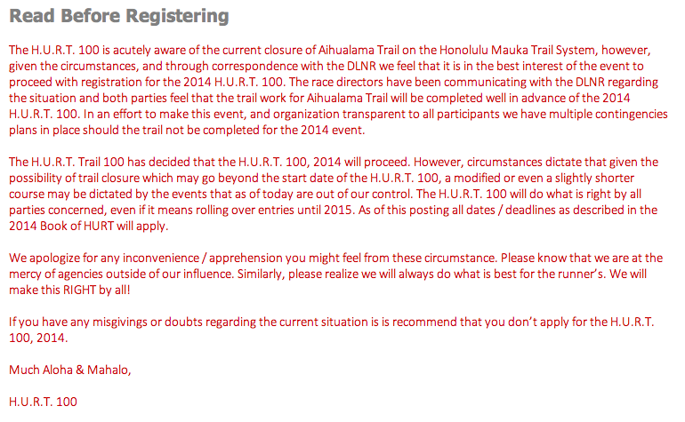 日本時間8/5 9:00から始まったハワイ オアフ島で開催されるH.U.R.T 100mileの抽選で2.2倍の倍率をくぐり抜けて当選してしまいました。