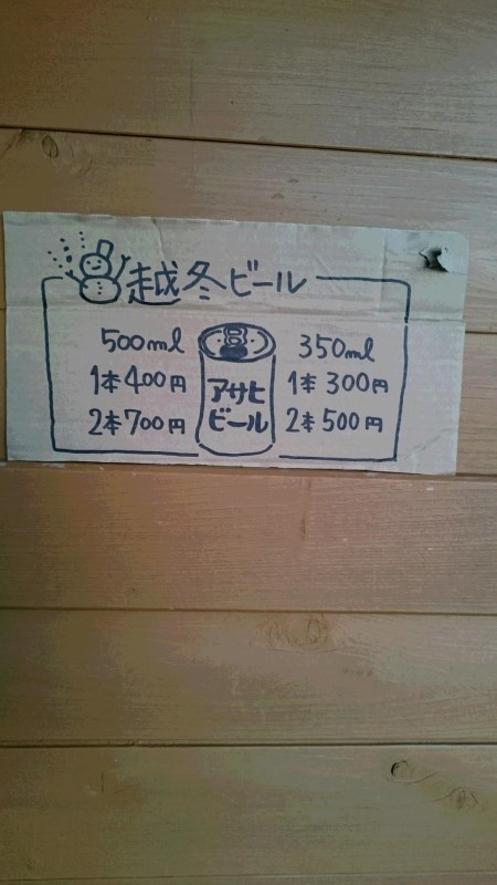 前日泊まった茶臼小屋にもあったんだけど、ここにも、越冬ビールが!500ミリ2本で、700円は安い!結局どちらの小屋でも4本を3人で飲みました!