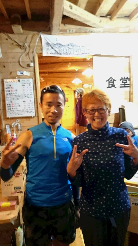 そうそう、聖平小屋では、夕方ホカはいて入ってきた一人の男性がいました。TJARに出る方で、試走にきたとのこと!あんまりカッコイイオーラが出てたので、写真撮らせていただきました。江川さんという方です。