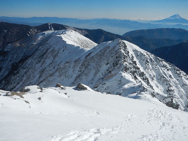 年末に北岳に行ってきました。 天候に恵まれたおかげで無事に登頂できました。 この池山吊尾根からの冬の北岳、25年前にも行きましたが静かでよいコースです。 ただ尾根に出てからの「八本歯のコル」と言われている箇所はちょっとした岩場でアルパインチックな楽しい場所でした。