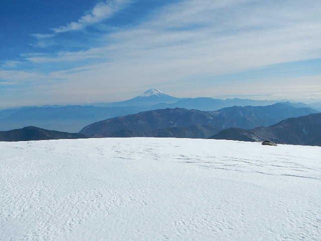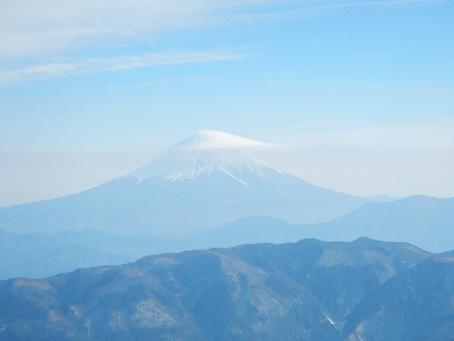 八本歯を越えて振り返ったら雪雲がものすごい勢いで迫ってきました。 富士山を見たらいつの間にか笠雲が・・・ これからの悪天候が予想されます。このあとすぐに強風が始まり、夕方から雪が降り始めてきました。