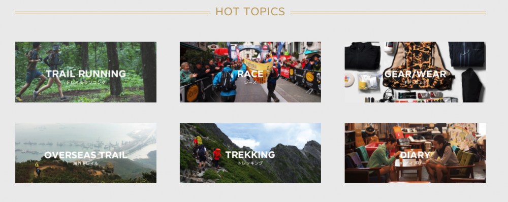 TOPページからは「トレイルランニング」「レース」「ギア/ウェア」「海外トレイル」「トレッキング」「ダイアリー」と6つの切り口から記事を探すことができますので、ぜひご覧ください!