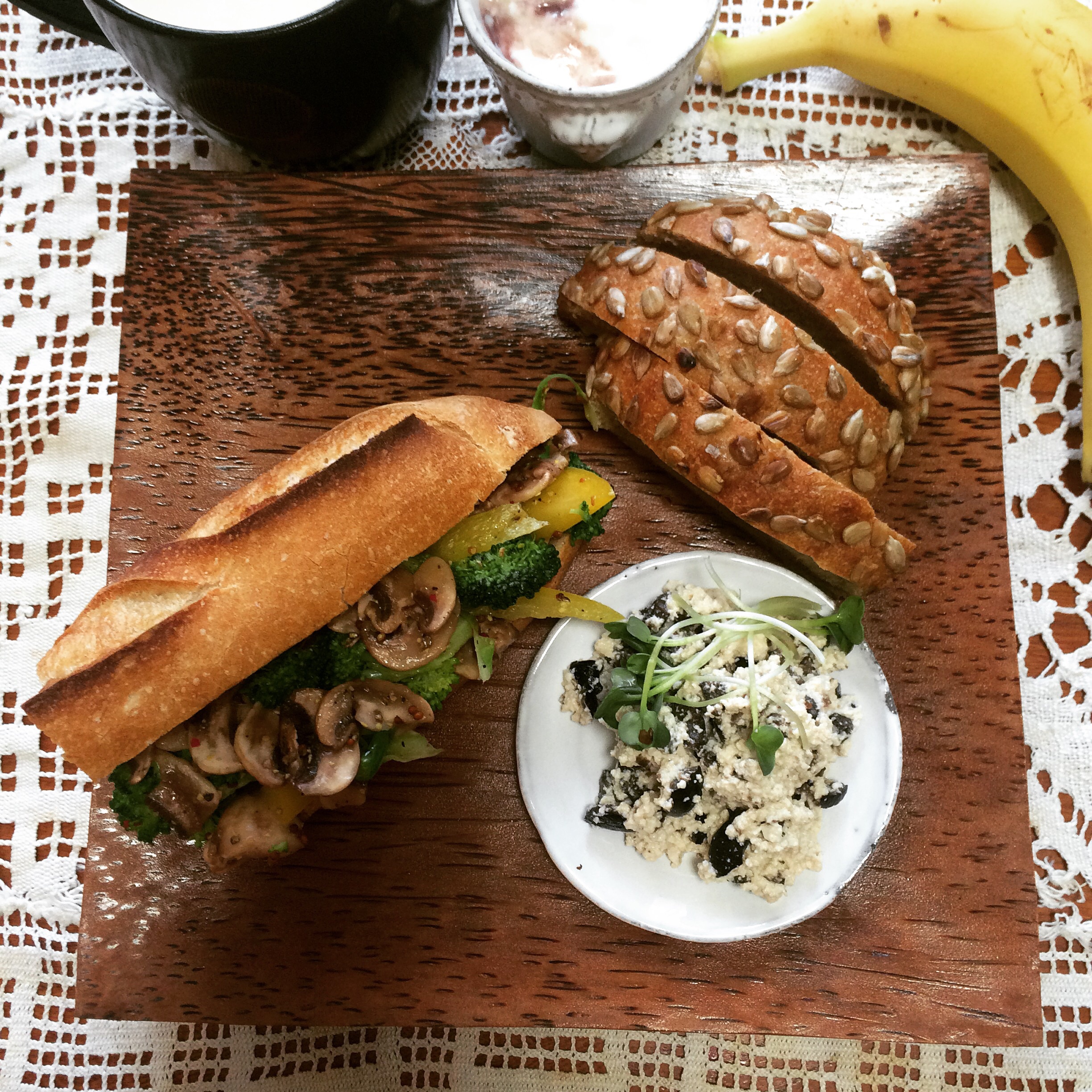 imageimageマッシュルームとパプリカとブロッコリーのベジサンドとカッテージチーズ風豆腐とブラックオリーブのパテ
