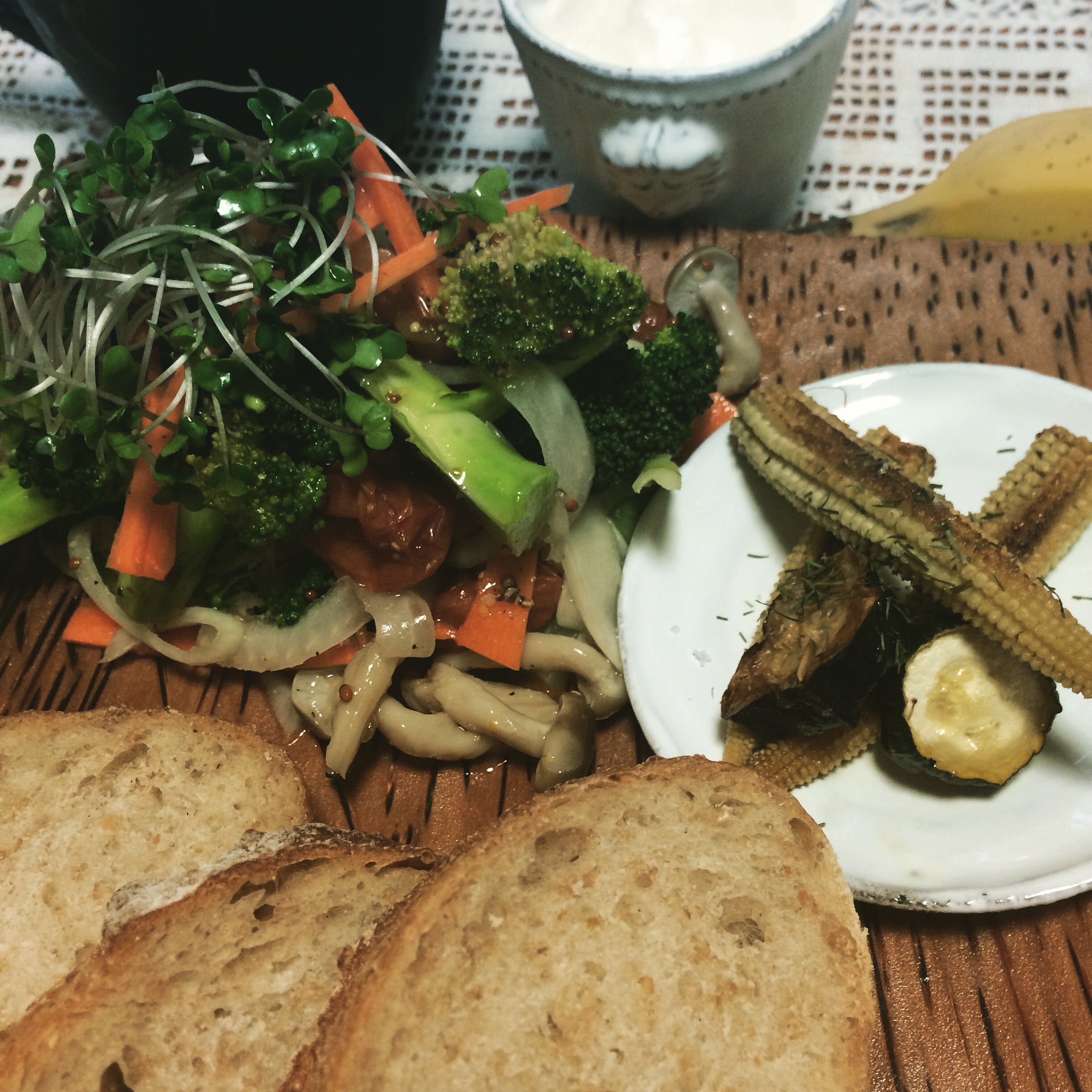 imageブロッコリーと人参とシメジとタマネギのピクルスの柚子マーマレードと粒マスタードのサラダとベビーコーンとズッキーニのマリネ〜