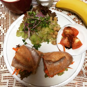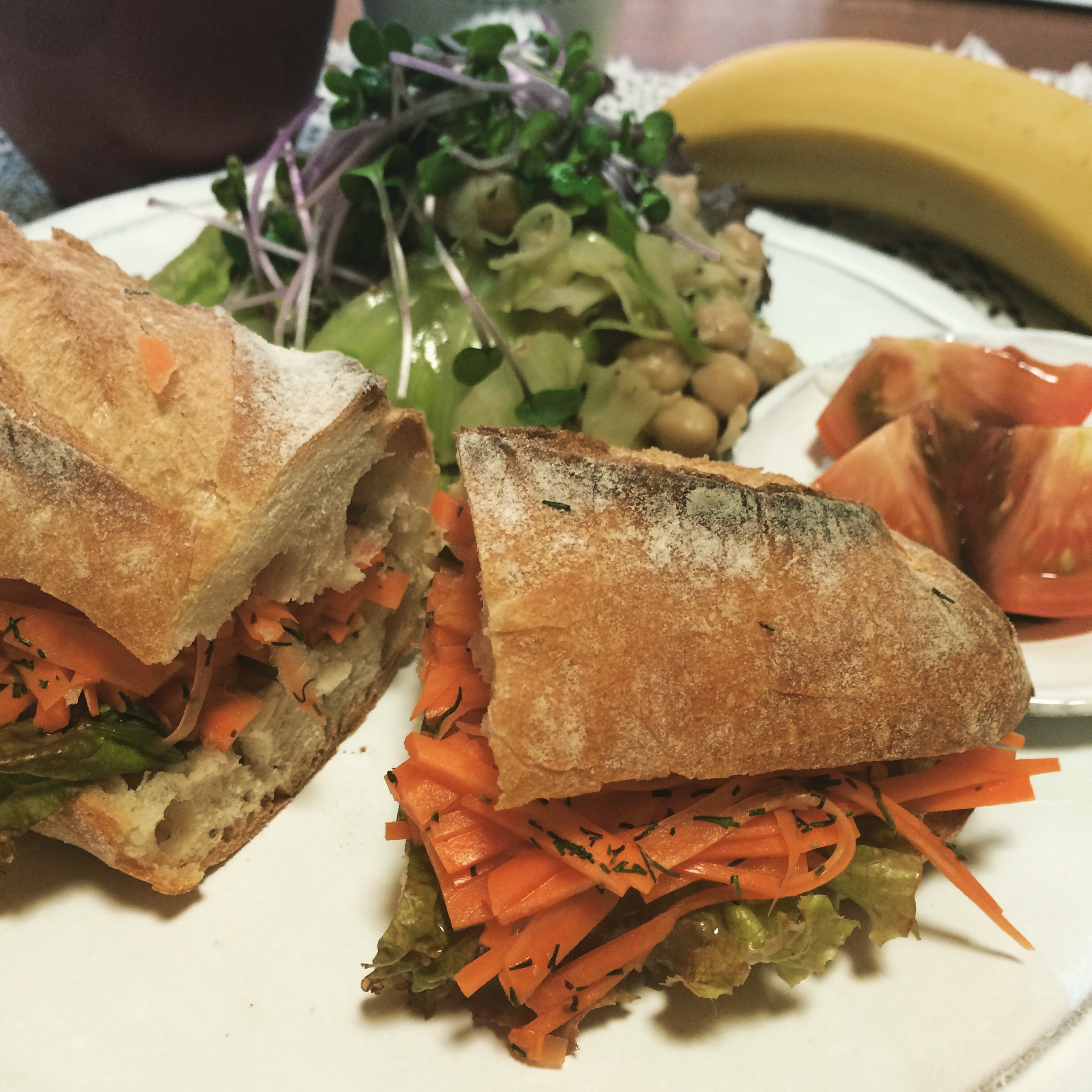 人参サンドと蒸しキャベツとひよこ豆のエスニックサラダ〜