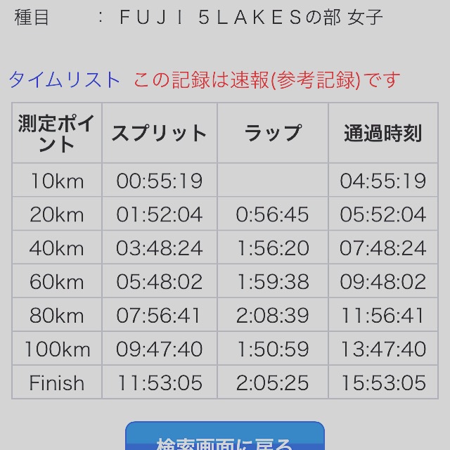早く終わらないかな….と心が折れかけながら回った~ここのタイムが中ダルみをしてた~100kの人との分岐辺りで92k〜かなりの疲労….あと30k長い…