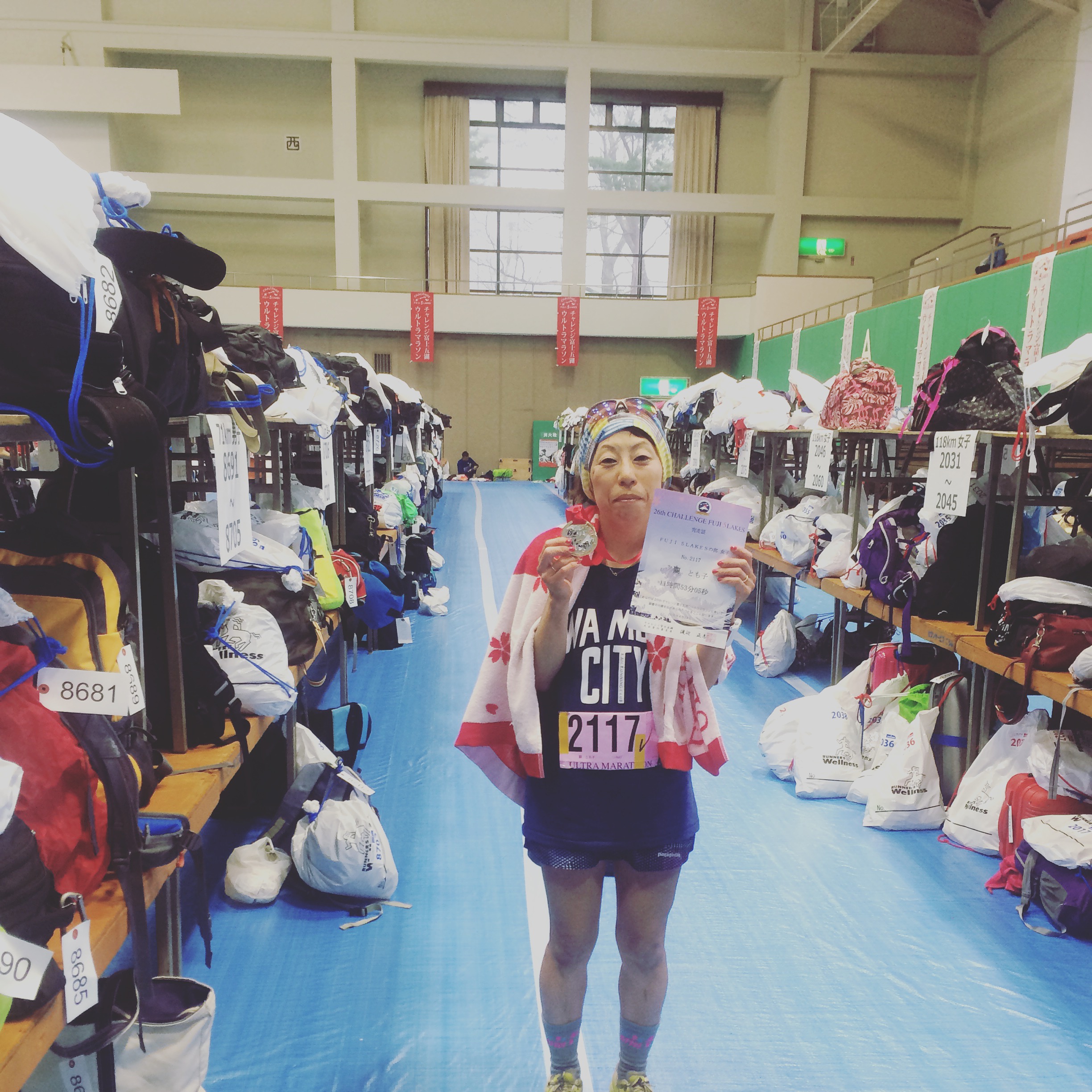 *今回は、ほぼ1時間に1つジェルと2時間に1つトップスピードか、ベスパ、その間も5k毎にあるエイドで水と食べ物(おにぎり、うどん、パンとか漬け物、バナナとかを補給~文明堂のカステラはやっぱり美味しいかった~とにかく、空腹感を感じないようにいつもよりもしっかり補給~