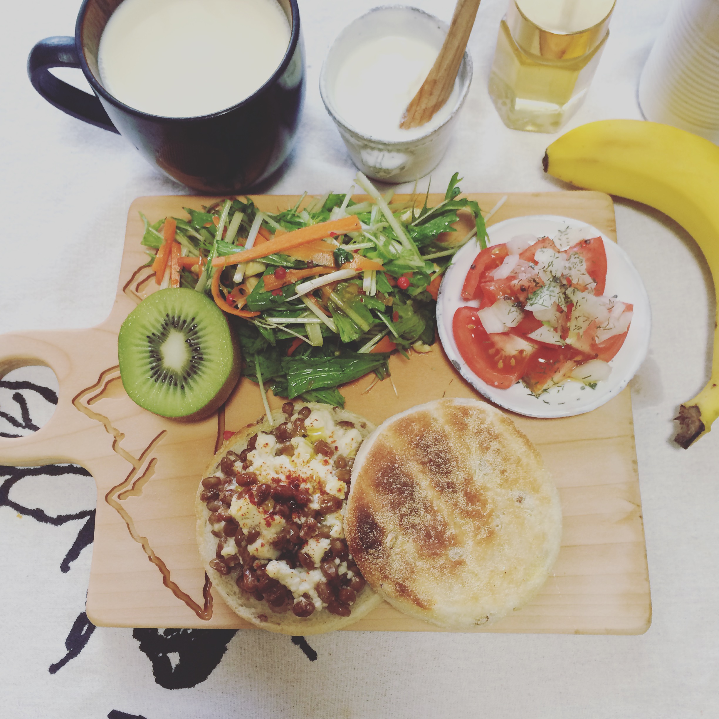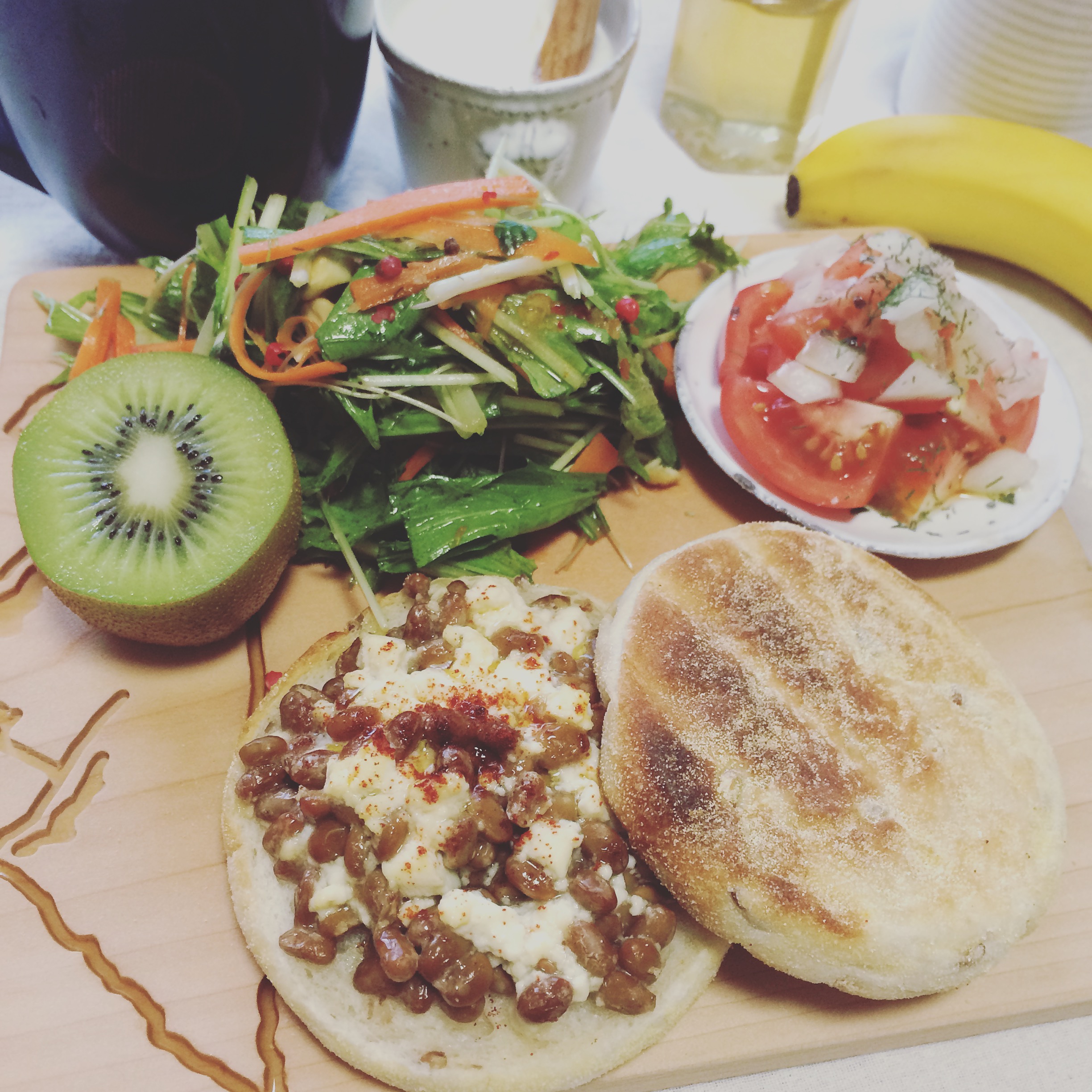 豆腐と納豆のサンドイッチ~豆腐のマリネと納豆を混ぜてパプリカパウダーをかけてトースターで焼くだけです^ ^やっぱり美味しいので是非〜〜