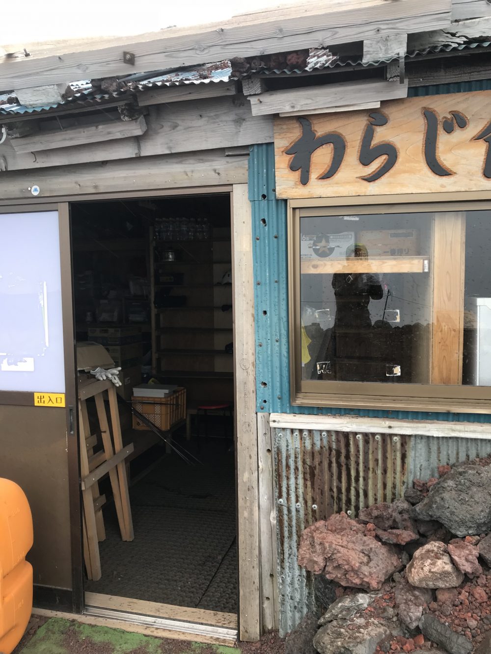 7合目手前からあられが降りその後雨風が強くなってきたときに丁度わらじ小屋に着いた。たまたま7.5合目のわらじ小屋が山小屋を開ける為の準備をしていて、寄っててもいいよ!と言われ、ストーブの前に椅子を用意してくれて、暖をとれてホッと一息σ^_^; 優しさに感謝♡