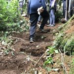スコップを、1人1本を渡されてそれを持って11:00過ぎ位に作業場の近くに30分位歩いて登り到着、そこで早めのランチをサックリ食べて、11:40に現場に向かい作業でした。