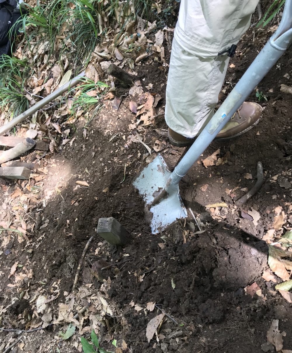 杭と木のストッパーを取り除き、土を固めてステップを作った~こんな風に出来上がるんだ?とちょっと感動!普段通ってるトレイルのステップを自分達が作ったと思うとちょっとうれしくなった。