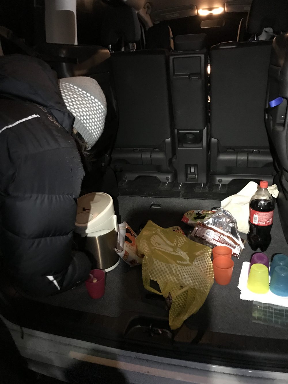 今回は夜の足和田山で小雨からの雪にあいました(*_*) 初めはパラパラと気がつけば横殴り??って感じで、地面も白くなって行きシューズも濡れてきた。FGT始まってから初の雪だったらしい。足和田山を登る前にトレイルテストセンターに寄り道をしたら、参加者のしーにゃんが知り合いらしく、コーラとかコーヒーとかを出してくれた^ ^そしてなんと足和田山を降りた紅葉台の所で味噌汁エイドを出してくれて本当に感謝でした。