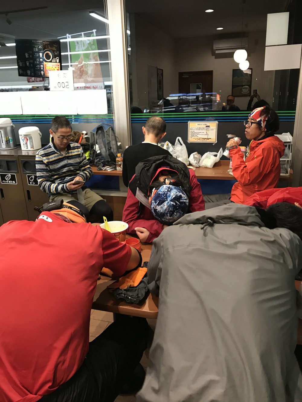 相変わらず、風穴から朝霧道の駅は極寒で単調な道はとても長く感じる、朝霧道の駅でいつも暖かい缶スープやコーヒーを飲みながら軽く補給をする。この時に、参加者の陰さんが新聞紙を巻くと暖かいよと言うので、新聞紙をお腹と背中と肩に巻いたら、これがヤバいくらい暖かくて、しばらく巻いたまま走った(笑) そのくらい寒かった…