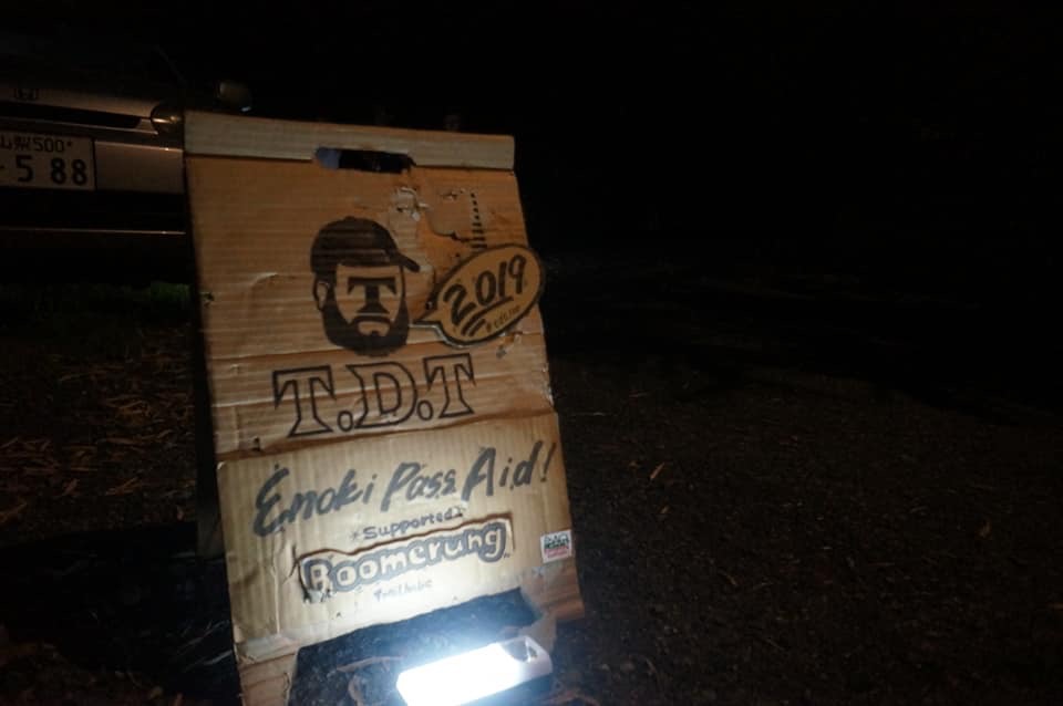 進みだして、急にやけに足が重い…,登りの足がかなり疲れてた….やっと榎エイドに着いた、ベスパの斎藤さんやユミちゃん、クボヒデさんの美味しいスープが待っててくれた。昼間に冷たい飲み物の一気飲みを沢山して、しかも後半は果物とジェルで完全に胃が酸化して気持ち悪くなってしまってた(-_-;) こうなるのはわかってたけど….TDTで体調悪くなったこと無いし24hで終わるし….と甘かった(..)