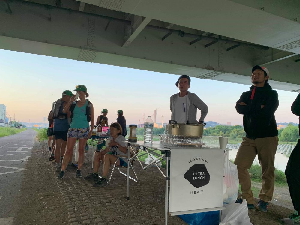 そしてゴール10k手前のガス橋エイドに着いた。ここでは潤ちゃんとモモコさんが毎回、エイドを出してくれてて今回はやいちゃんもフルーツポンチを用意しててくれた~