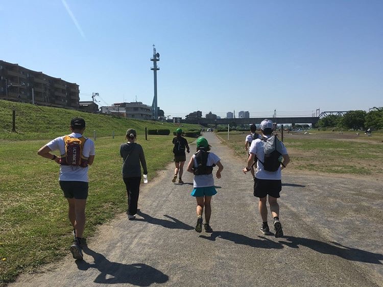 スタート!多摩川沿いをキロ6-7ペースで走ります〜今年は、スタートから気温が高く二子玉に着く前から超汗ダク~この後どうなるの??って感じだった。