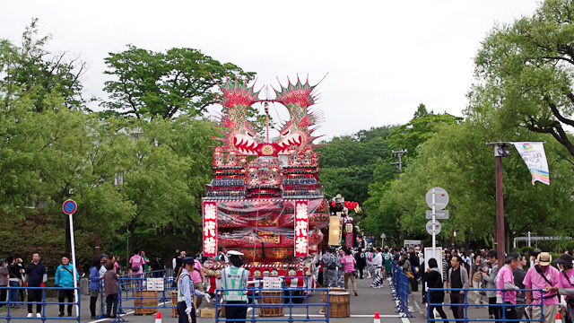 偶然、秋田市では秋田各地のお祭り(竿燈、ねぶた、なまはげ、、、)が一同に会してパレードを行うお祭りの最中であった。