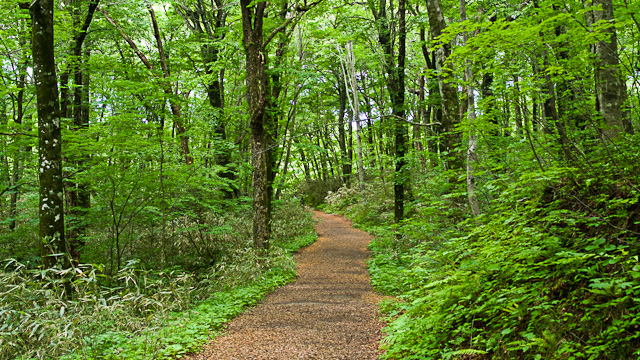 青池付近のブナの森。ブナの美しい原生林こそが白神山地。