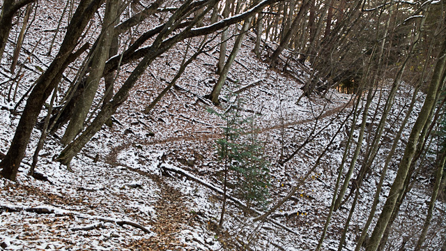 羅漢寺山のトレイルは入口が非常にわかりづらく、まさか観光客でにぎわう富士山ビュースポットの写真撮影場所の脇にあるとは気付かなかった。人がたくさんいた山頂駅付近とは一変、誰とも出会う事無くトレイルを楽しめた。2日前の雪は残っていたもののトレイル部分には雪がなかったので土の状態は問題なかった。しかし倒木が結構な数あり、巻こうとするにも上手く通れそうになかったので何度もくぐる羽目になった。それでも、ほぼ下りだけで斜度も緩かったため終始気持ち良く走れるトレイルだった。気温も低くなっているこの時期は汗もかかず快適である。