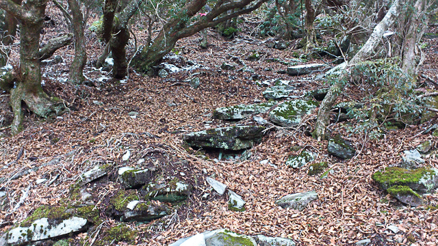 熱海で乗り換えた伊豆急線は河津桜目当ての人で満員御礼、伊豆大川で降りてまずは箒木山まで10kmくらいのロードを登る。高低差1000mをロードだけで登ることになる。頂上には通信施設があり、裏手から万二郎岳へのトレイルがつながっている。この区間は山と高原地図には破線すら記載がないが、国土地理院の地形図には記載されている。赤テープやロープを目印に急登と激下りの道を進む。コースを見失いやすい上に、雪解けの水分を含んでいるせいか全般的に非常にすべりやすく、落葉の下は石や木の枝が隠れている。そして斜度もきついので進むのに難儀する。冬枯れの時期なのでなんとかなったが、葉が茂る季節は大変だろう。
