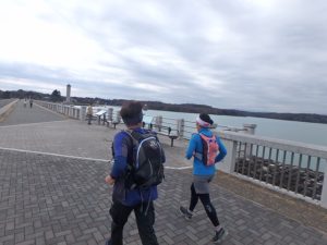 堤防を直下から上まで駆け上がり、堤防ランでラスト! 掬水亭で無事ゴールとなります! お疲れでした! 掬水亭のお風呂は温泉ではありませんが、狭山茶の天然バスパウダーを入れており、お茶の香りがとってもリラックス出来るお風呂ですので、ランの後に是非お立ち寄りください。