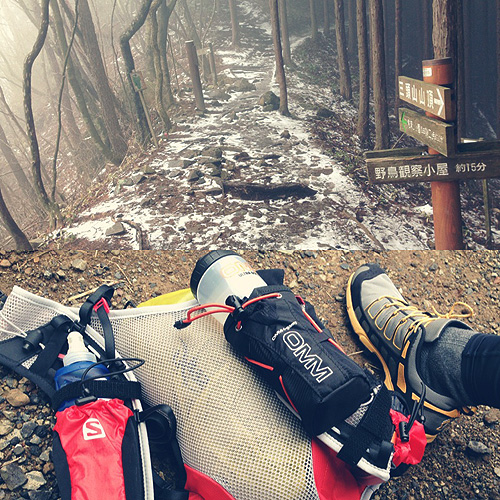 (test2)OMMボトルホルダー→結果△:ボトル揺れが肋骨に当たって痛く長時間は厳しそう。やはり前面ボトルスタイルは自分には向いていないことを再認識(涙。しかしホルダーはそのままポケットして活用、前面の収納量アップ!