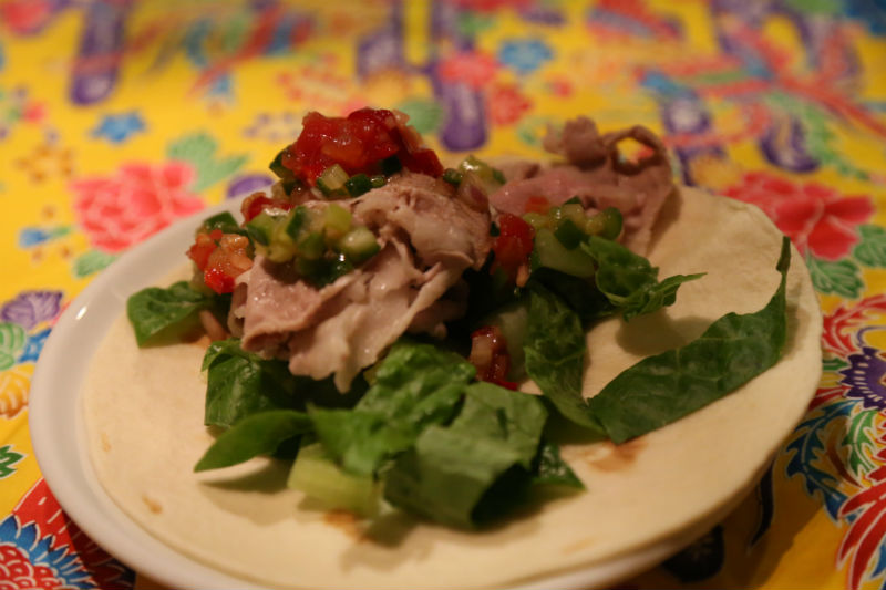 猪豚のタコスです。さっぱりとしたビネグレットを合わせてくれました!
