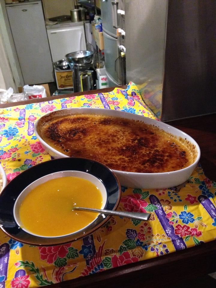 カラギ茶のクレームブリュレ。国頭村のマンゴーをソースにしてかける贅沢なデザートです。