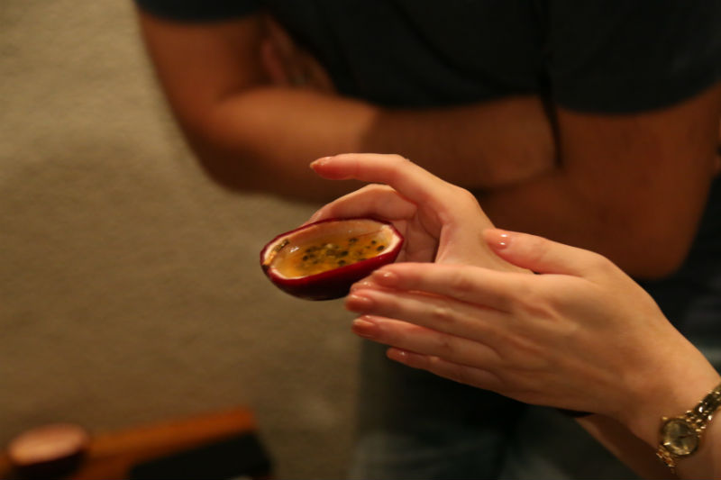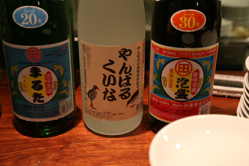 お酒は沖縄本島最北端、田嘉里酒造の「まるた」と「やんばるくいな」を用意。お酒も同じような考え方で、パッションフルーツに泡盛を入れたカクテルは現地の再現。