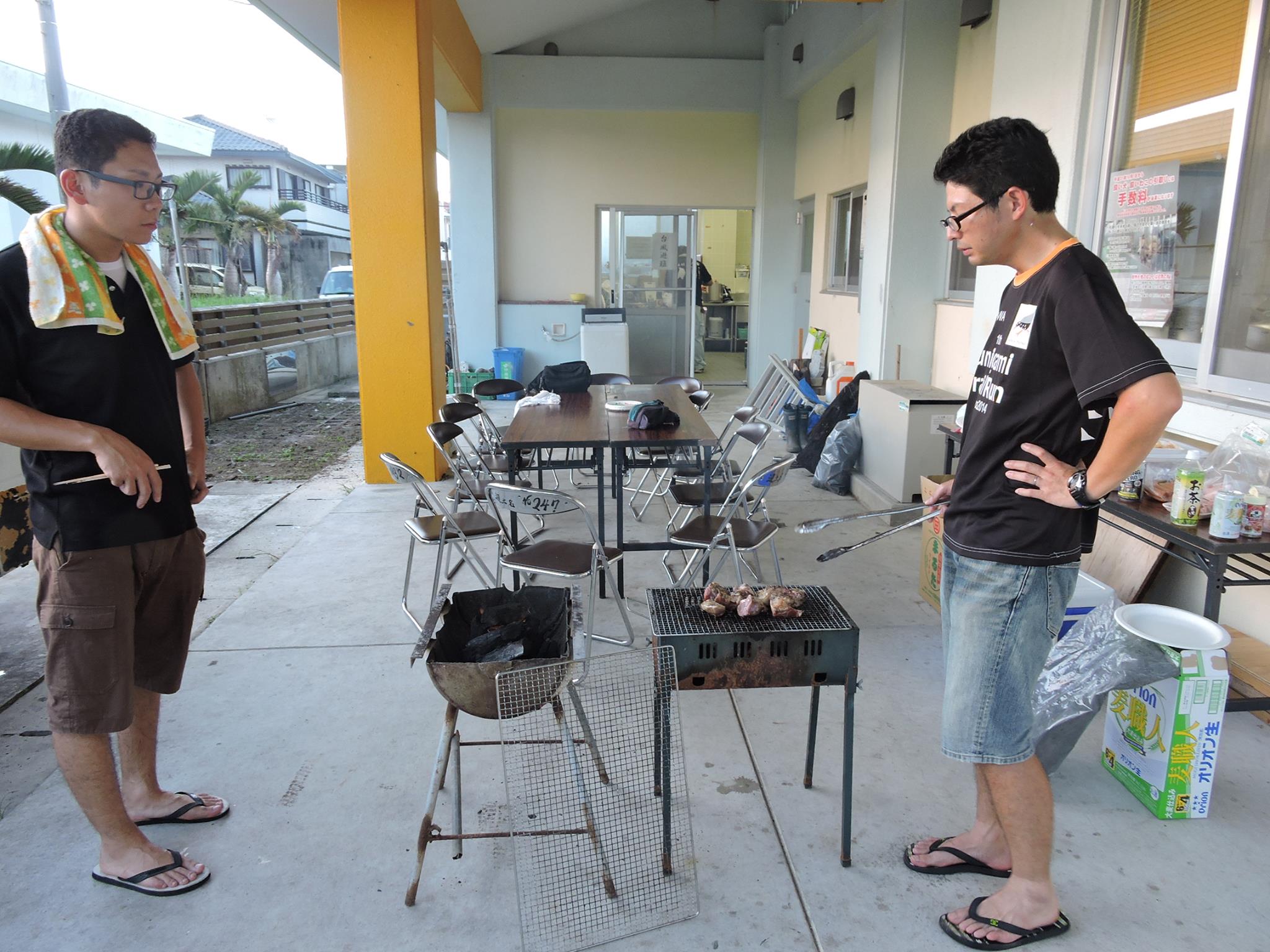 ▲国頭村青年会主催の交流会でハイケイを焼く! 2015年7月