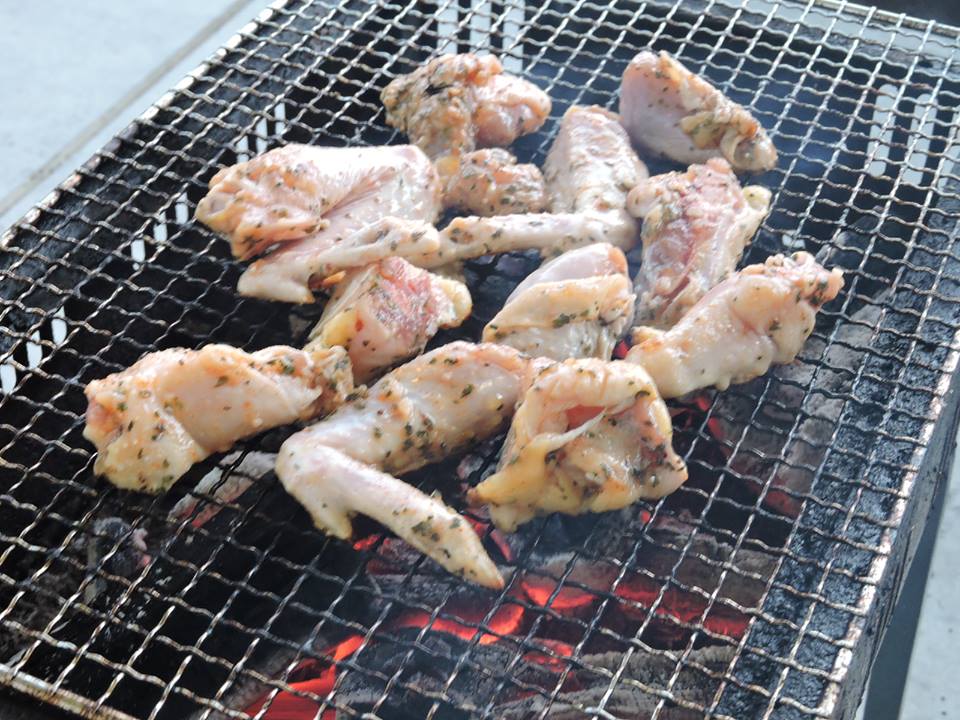前田 ハイケイは脂が多く煙がたくさん出るので、肉のうまみを引き出しながら焼くのが難しいんです。炭火焼きで脂が落ちると、すぐ火が強くなるのでペットボトルに入れた水で消火しながら、塩、こしょうで味つけします。飲みながら、会話しながらハイケイを焼くには、かなりの経験が必要です。ハイケイ以外にソーキ肉と豚の三枚肉も焼いたりします。