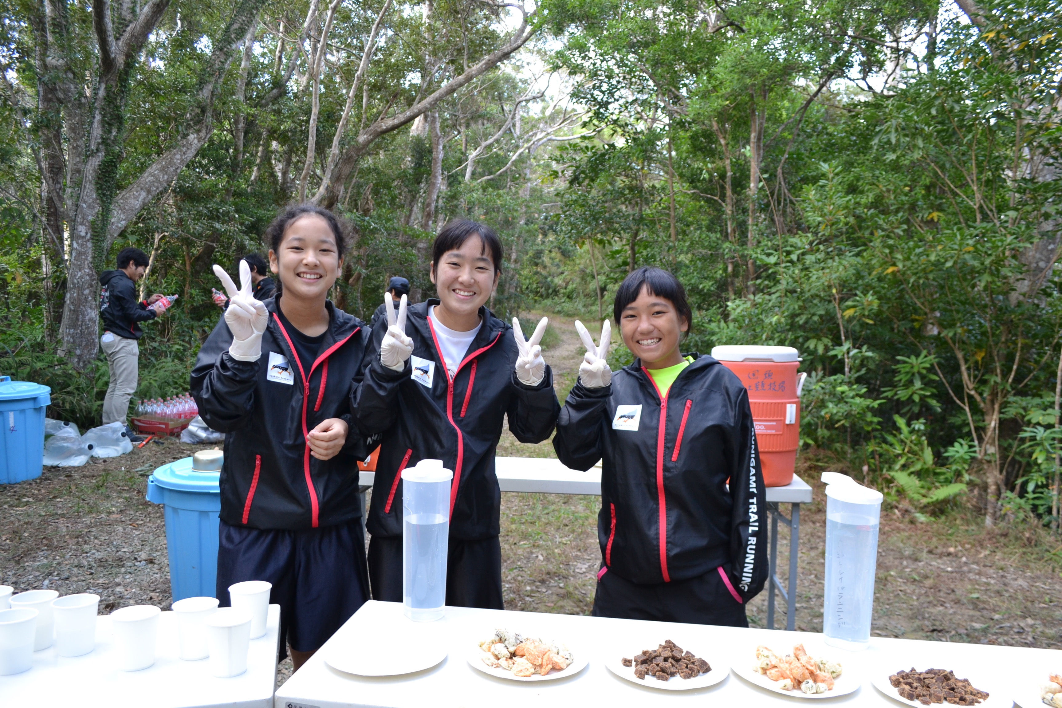 (地元の子どもたちがエイドステーションでボランティア。photo by shuka okubo)